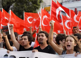 "¡Compórtate, Erdogan. No nos eches a las montañas!", han coreado los participantes en referencia a los campamentos que tiene el PKK en la región montañosa del norte de Irak fronteriza con Turquía.