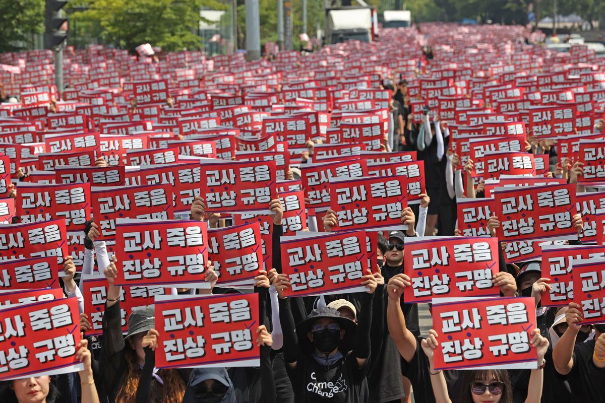 Unos 120.000 profesores se han manifestado este sábado en Seúl para protestar contra la nueva legislación educativa que consideran los deja desamparados ante posibles protestas y reclamaciones de las familias.