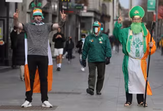Tres personas celebran el Día de San Patricio en Dublín, Irlanda. - Brian Lawless/PA Wire/dpa