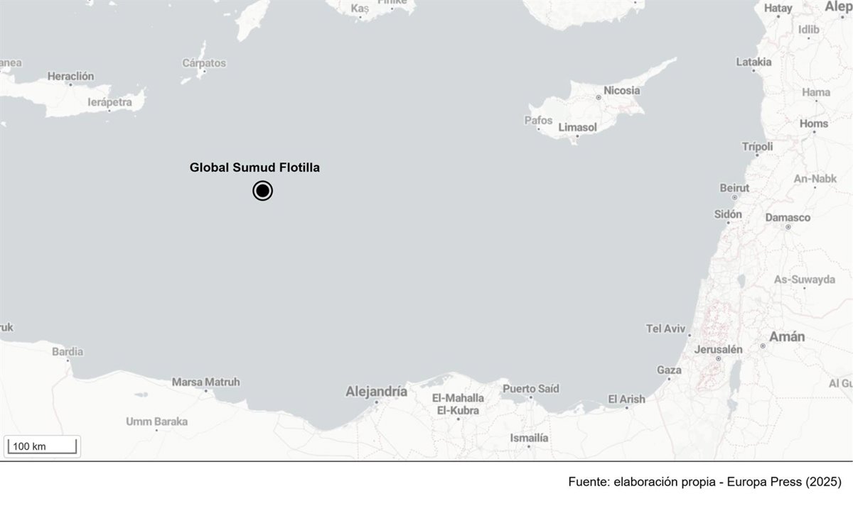 Ubicación de la Global Sumud Flotilla a 28 de septiembre de 2025 - EUROPA PRESS
