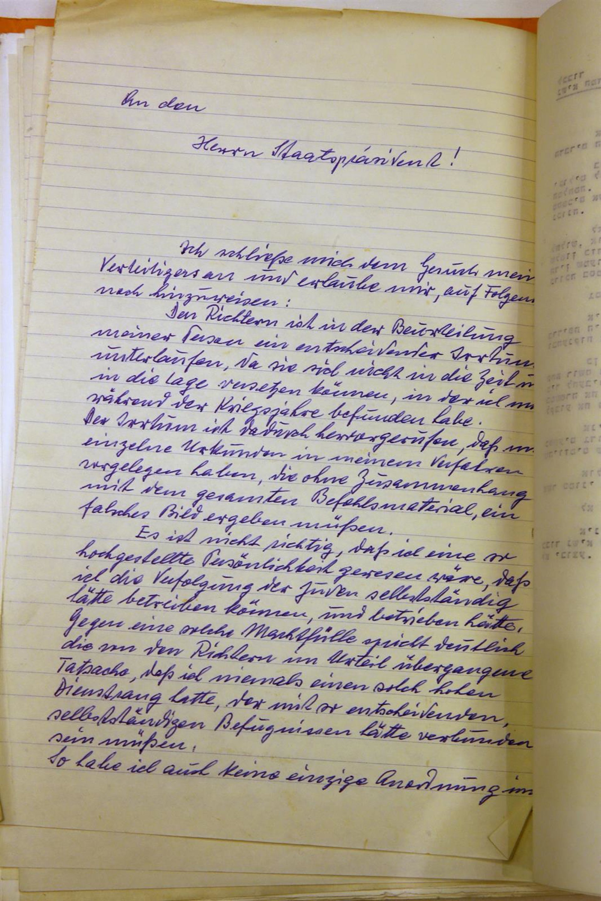 Su petición de que la pena de muerte le fuera conmutada está fechada dos días antes de su ahorcamiento y su publicación, escrita con bolígrafo, se produce coincidiendo con el Día Internacional del Recuerdo del Holocausto.