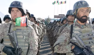 Militares del Ejército afgano desplegados en formación en un cuartel afgano - MINISTERIO DE DEFENSA DE AFGANISTÁN - Archivo
