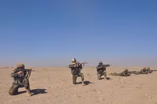 Militares afganos desplegados en un ejercicio de tiro - MINISTERIO DE DEFENSA DE AFGANISTÁN - Archivo