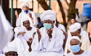 Hombres con mascarillas rezando en Sudán - Faiz Abu Bakr/APA Images via ZUM / DPA