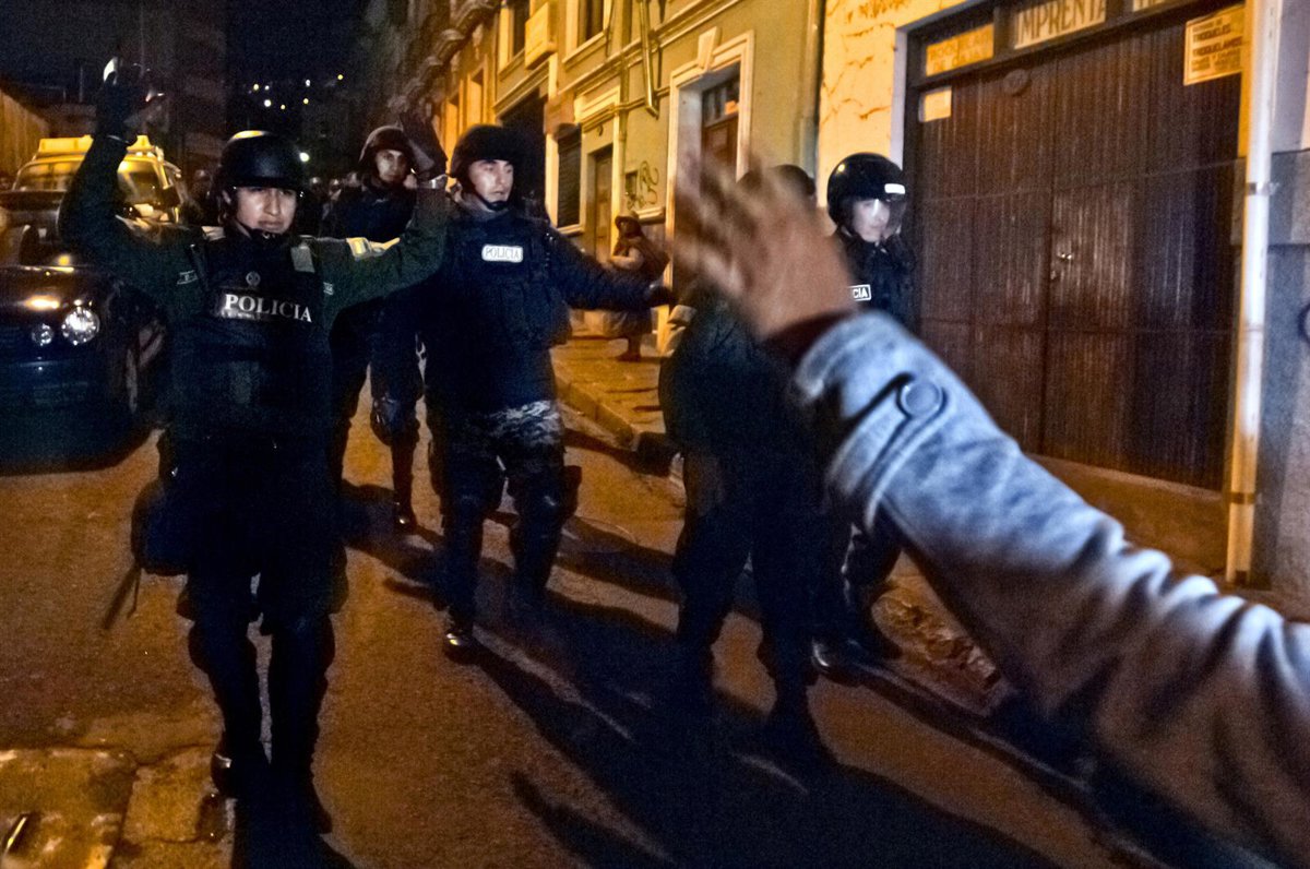 Debido al ataque se han personado miembros de la Policía Boliviana que han tenido que utilizar gases lacrimógenos contra los asaltantes y han detenido a diez de ellos, que se encontraban en el lugar desde por la mañana con el objetivo de interceptar a la asambleísta.