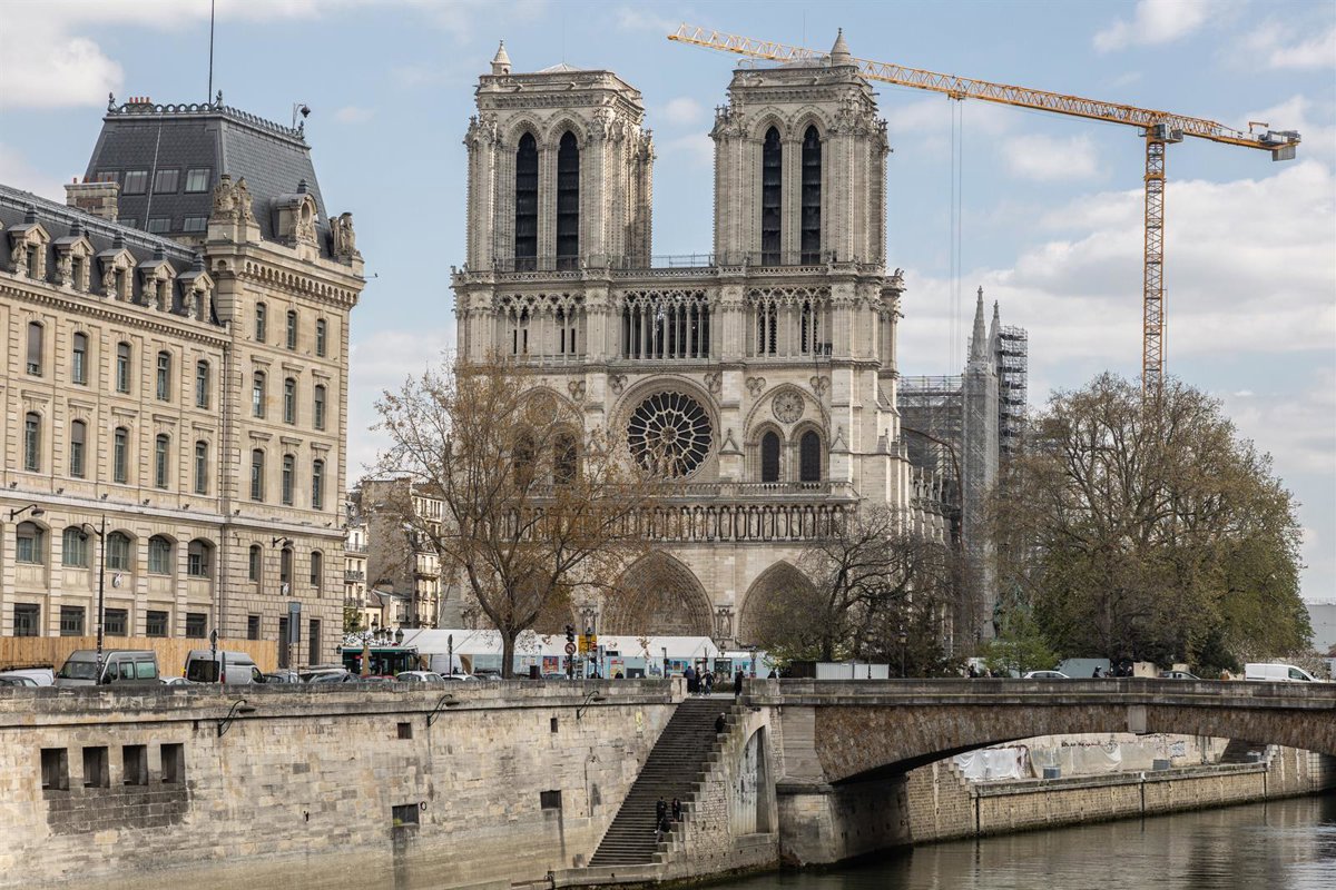 El avance de los trabajos de reconstrucción en la catedral de Notre Dame, en París, ha permitido la retirada de los andamios en la zona alta y que la aguja vuelva de nuevo a ser visible casi cinco años después de un voraz incendio que provocó graves daños en el emblemático monumento.
