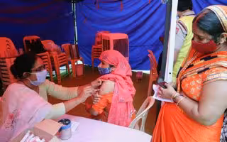 Inoculan con Covaxin a una mujer en un campo de vacunación cerca del edificio de la Organización Mundial de la Salud en Nueva Delhi. - Naveen Sharma/SOPA Images via ZU / DPA