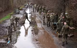 Las Fuerzas Armadas han desplegado efectivos en el estado alemán de Sajonia-Anhalt en respuesta a las graves inundaciones que afectan a la región. Los militares ayudan a llenar y distribuir sacos de arena en un contexto de ola de frío.