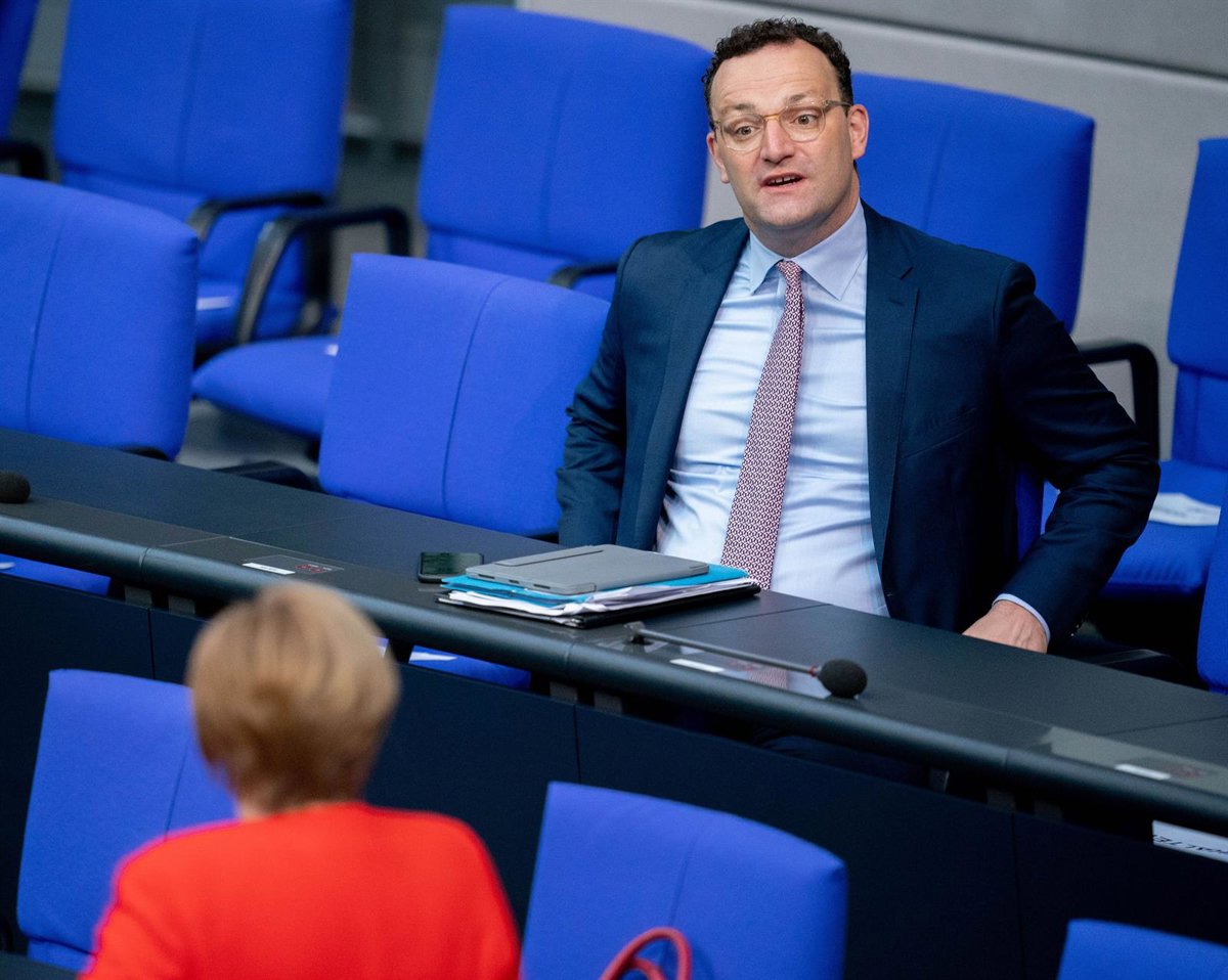Merkel habla con el ministro de Sanidad alemán, Jens Spahn, en el Bundestag - Kay Nietfeld/dpa - Archivo