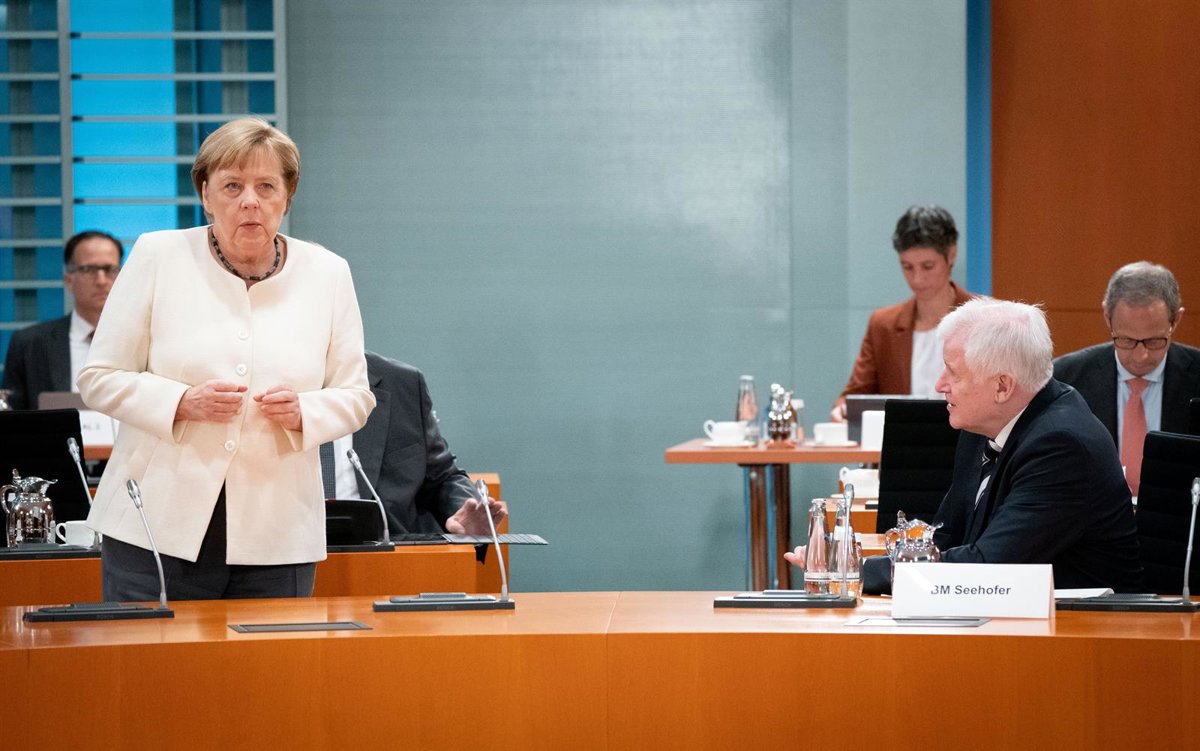 El ministro del Interior alemán, Horst Seehofer, habla con Angela Merkel en una reunión en la Cancillería - Kay Nietfeld/dpa
