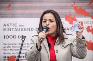 Archivo - 28 May 2019, Berlin: Sevim Dagdelen, deputy leader of the left-wing parliamentary group in the Bundestag, speaks at the protest rally against the Rheinmetall AG annual general meeting and the company's arms exports to war zones. Photo: Michael - Michael Kappeler/dpa - Archivo