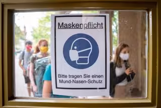 Cartel informando del uso obligatorio de la mascarilla en la entrada de un colegio en Berlín - Kay Nietfeld/dpa - Archivo