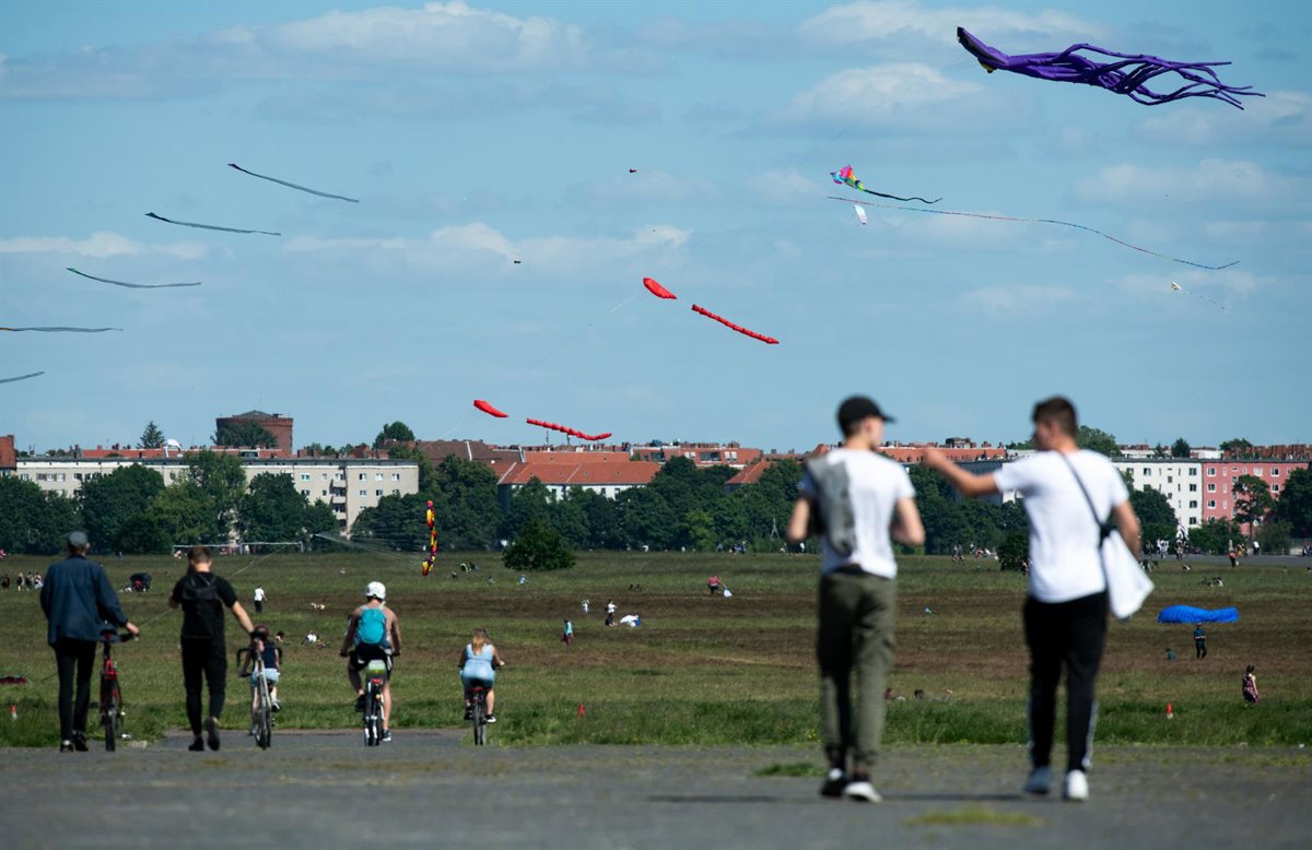 Ciudadanos volando cometas en el parque Tempelhofer Feld, en Berlín - Bernd von Jutrczenka/dpa
