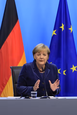 La canciller alemana sostuvo que es momento de dar un gran paso adelante para una nueva Europa y defendió que las medidas de rescate eran necesarias para mantener al euro intacto, así como que la Unión Europea necesita desarrollar nuevas estructuras, lo que significaría más Europa, no menos.