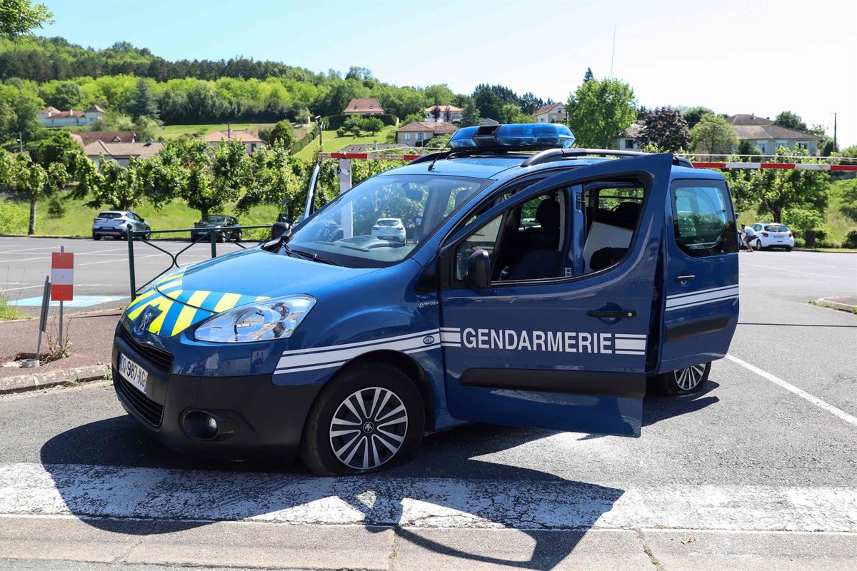 Archivo - 30 May 2021, France, Le Lardin-Saint-Lazare: A general view of a gendarmerie vehicle, whose tyres were slashed by a heavily armed former soldier in the Dordogne region of southwestern France. Photo: Diarmid Courreges/AFP/dpa - Diarmid Courreges/AFP/dpa - Archivo