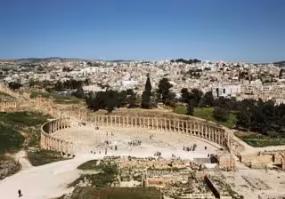 Las ruinas de Gerasa, vestigio de una de las principales ciudades del Imperio Romano de Oriente, son una de las atracciones turísticas más visitadas de Jordania. En su época de esplendor, llegó a ocupar 90 hectáreas, pero sufrió graves daños por un terremoto en el siglo VIII.