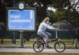 Una mujer pasea en bicicleta por Buenos Aires. - 2020 GETTY IMAGES / MARCELO ENDELLI - Archivo