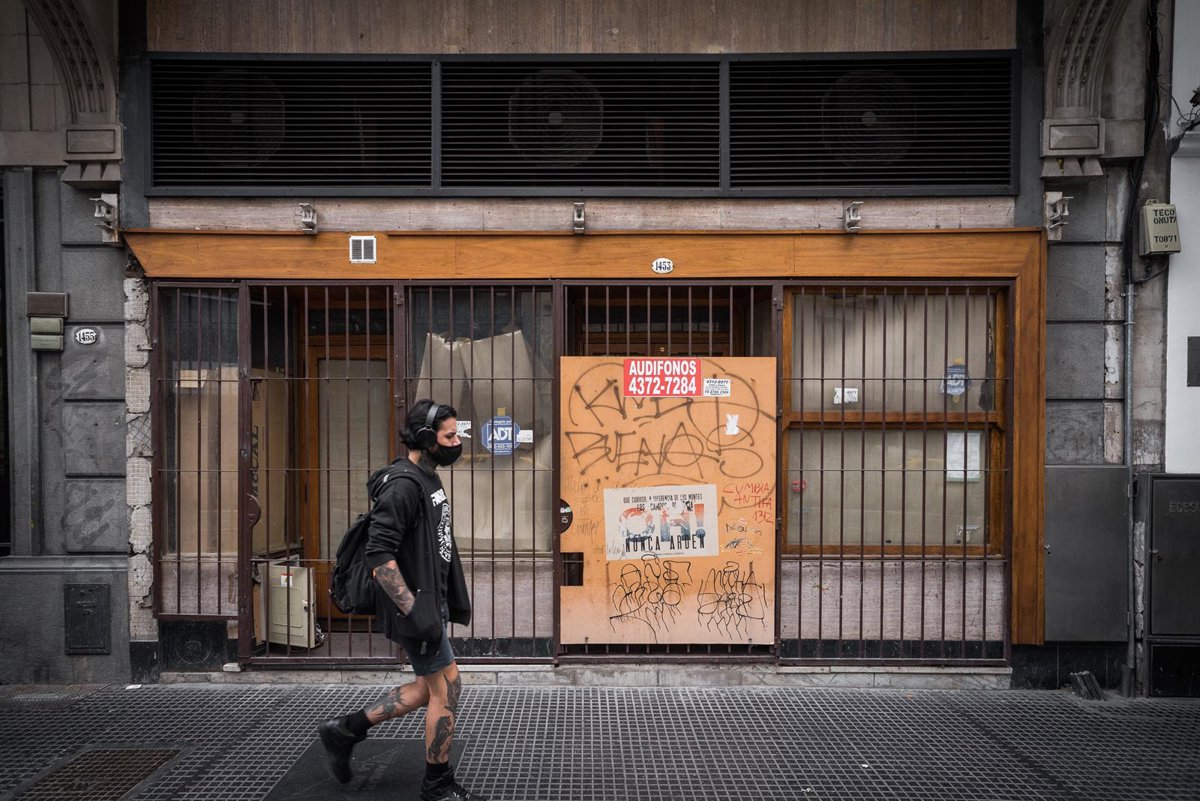 Un joven pasea al lado de un comercio tapiado en una de las principales calles de Buenos Aires. - ALEJO MANUEL AVILA / ZUMA PRESS / CONTACTOPHOTO