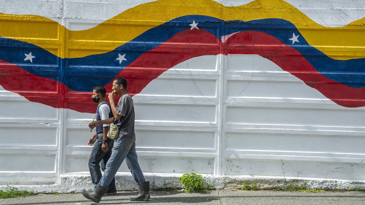Archivo - Dos personas pasan ante un mural con la bandera de Venezuela en Caracas - JIMMY VILLALTA / ZUMA PRESS / CONTACTOPHOTO