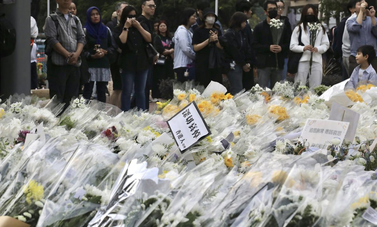 Flores depositadas en recuerdo a las víctimas del gran incendio de Tai Po, en Hong Kong. - Europa Press/Contacto/Liau Chung-ren