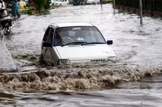Archivo - Un coche intenta avanzar en una calle inundada en Pakistán - Europa Press/Contacto/Hussain Ali - Archivo
