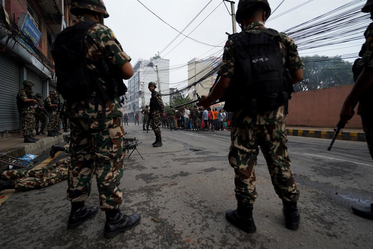 El Ejército de Nepal desplegado en una calle del país durante las protestas. - Europa Press/Contacto/Aryan Dhimal