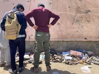 Dos personas inspeccionan el lugar del atentado contra una escuela femenina en la capital de Afganistán, Kabul - Veronika Eschbacher/dpa