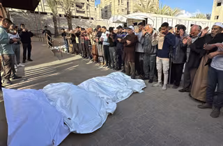 Palestinos rezan junto a varios cadáveres tras un ataque del Ejército de Israel contra Jan Yunis, en el sur de la Franja de Gaza (archivo) - Abdullah Abu Al-Khair / Zuma Press / ContactoPhoto