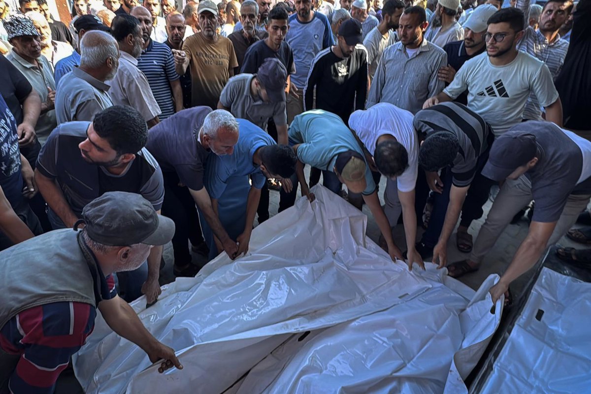 Palestinos junto a varios muertos por los ataques del Ejército de Israel contra Deir al Balá, en el centro de la Franja de Gaza - Ahmed Ibrahim/APA Images via ZUM / DPA