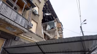 Asimismo, "dos vehículos han sido destruidos por el fuego y otros seis han quedado dañados por los escombros" caídos tras el bombardeo, según ha precisado Lisak, que ha apuntado que los servicios municipales llevan desde la noche subsanando los efectos "cubriendo las aberturas de las ventanas con film transparente y limpiando las zonas" afectadas.