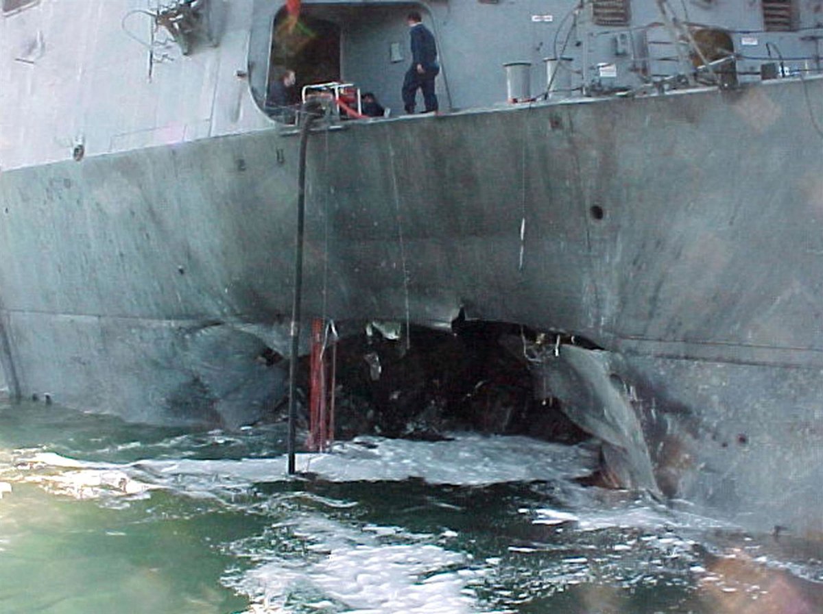Los terroristas, que se acercaron al 'USS Cole' haciendo gestos amistosos para atraer la atención de parte de la tripulación, activaron la carga explosiva cuando el destructor estaba cargando combustible en el puerto de Adén, matando a 17 personas, hiriendo a 40 y abriendo un agujero de más de doce metros en el casco a causa de la potencia de la deflagración.