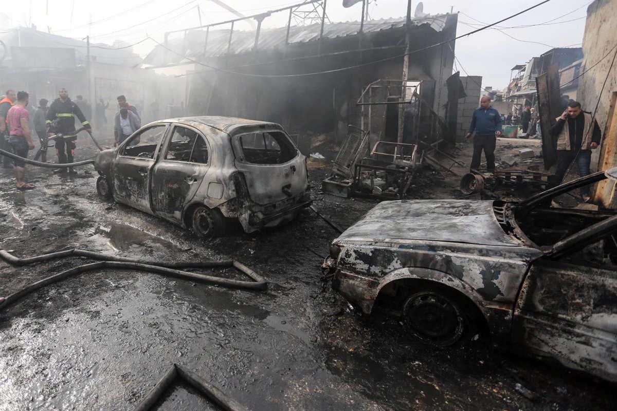 El suceso fue provocado por la explosión de una bombona de gas en la panadería, lo que generó un incendio que se extendió a varias tiendas y fábricas situadas en los alrededores en el campamento de refugiados de Nuseirat.