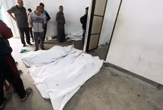 Un grupo de palestinos en la morgue de una clínica frente a los cuerpos de varios muertos en un bombardeo del Ejército de Israel contra un campamento de desplazados en Rafá, en el sur de la Franja de Gaza (archivo) - Europa Press/Contacto/Omar Ashtawy