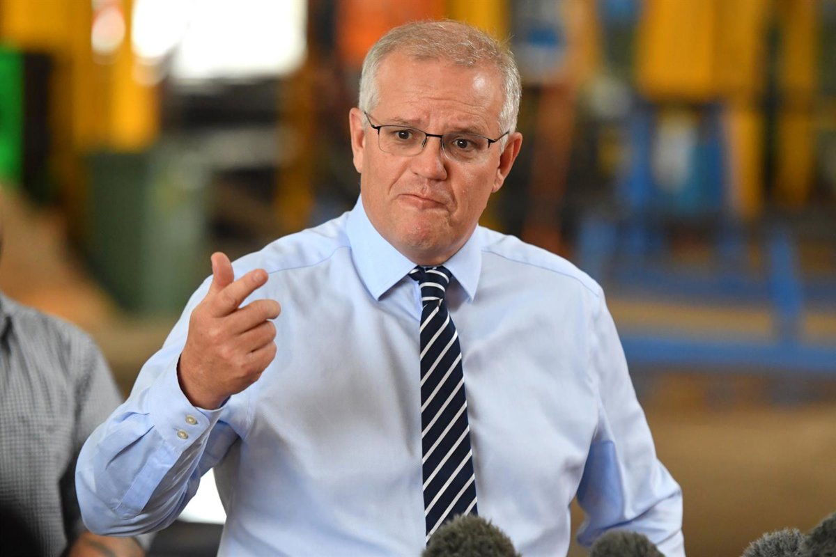Prime Minister Scott Morrison at a press conference after visiting TEi engineering and steel fabrication company on Day 16 of the 2022 federal election campaign, in Townsville, in the seat of Herbert. Tuesday, April 26, 2022. (AAP Image/Mick Tsikas) NO AR - AAPIMAGE / DPA