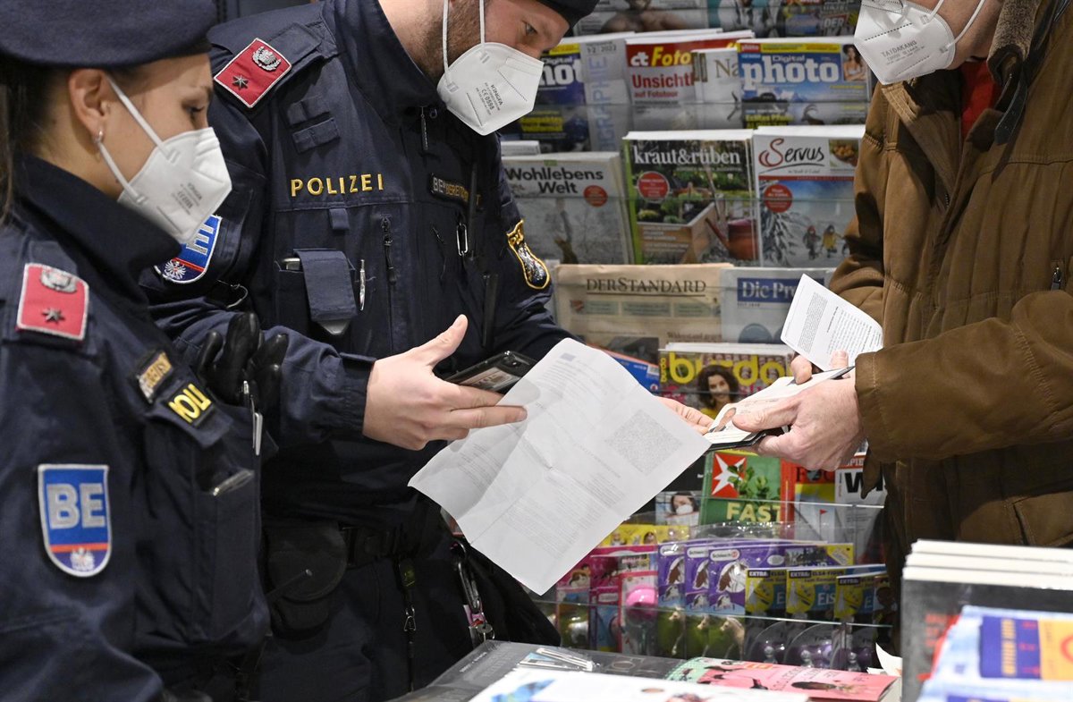La Policía de Austria inspecciona el certificado de vacunación o de recuperación de la COVID-19 en Viena, la capital. - Hans Punz/APA/dpa