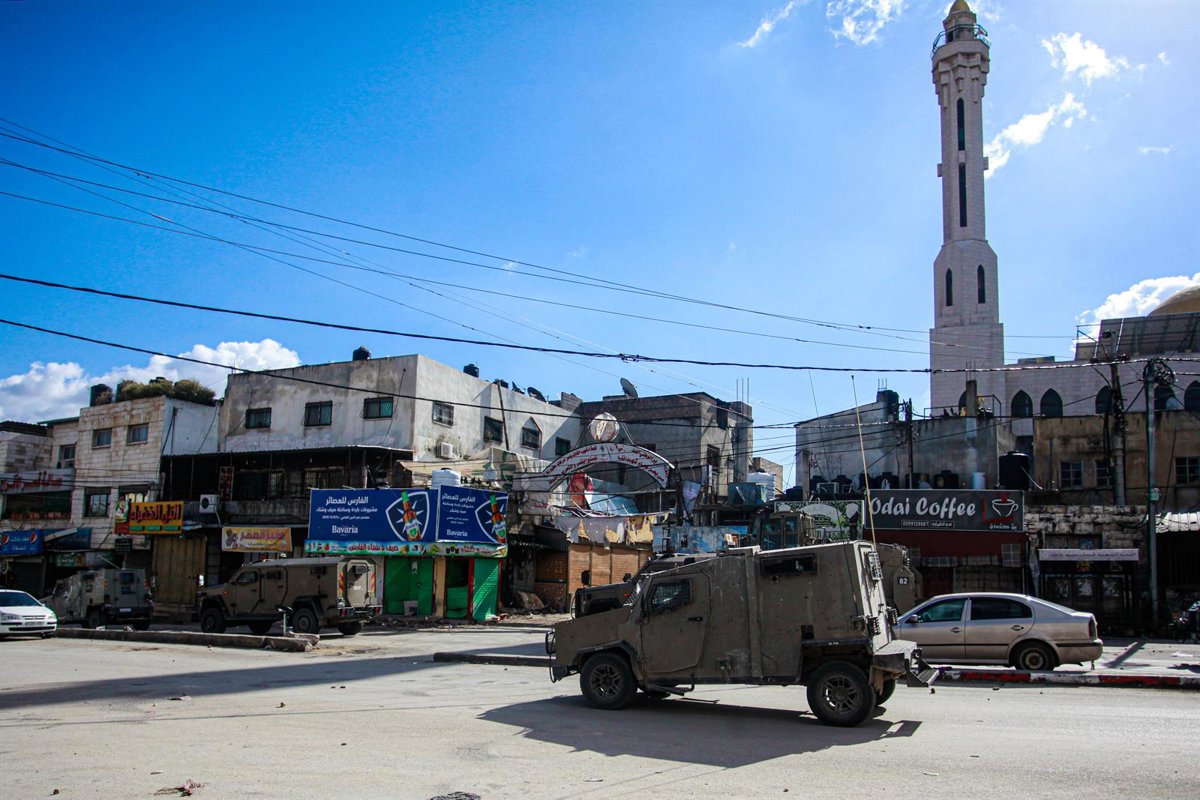 Vehículos militares israelíes cierran la entrada al campo de refugiados de Balata durante una redada para arrestar a palestinos, al este de Nablús, en el norte de Cisjordania - Europa Press/Contacto/Nasser Ishtayeh