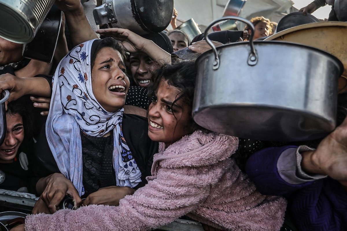 Archivo - Niñas intentan recibir ayuda humanitaria en Jan Yunis, en la Franja de Gaza- Abed Rahim Khatib/dpa - Archivo