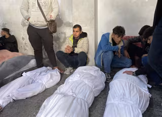 Palestinos junto a los cadáveres de varios muertos en ataques del Ejército de Israel tras ser trasladados al Hospital Baptista Al Ahli de la ciudad de Gaza, en el norte de la Franja de Gaza (archivo) - Europa Press/Contacto/Hadi Daoud