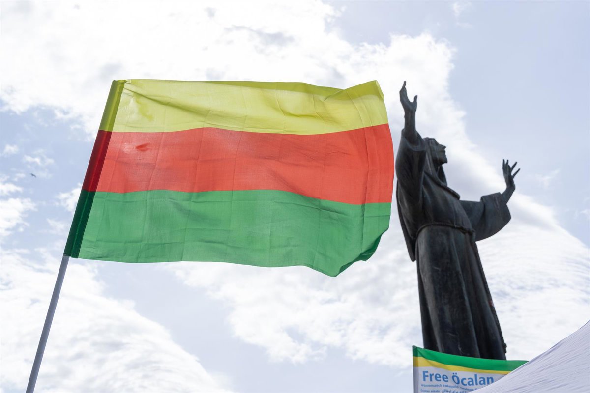 Archivo - Una bandera de las autoridades autónomas kurdas durante una manifestación en Italia - Europa Press/Contacto/Matteo Nardone - Archivo
