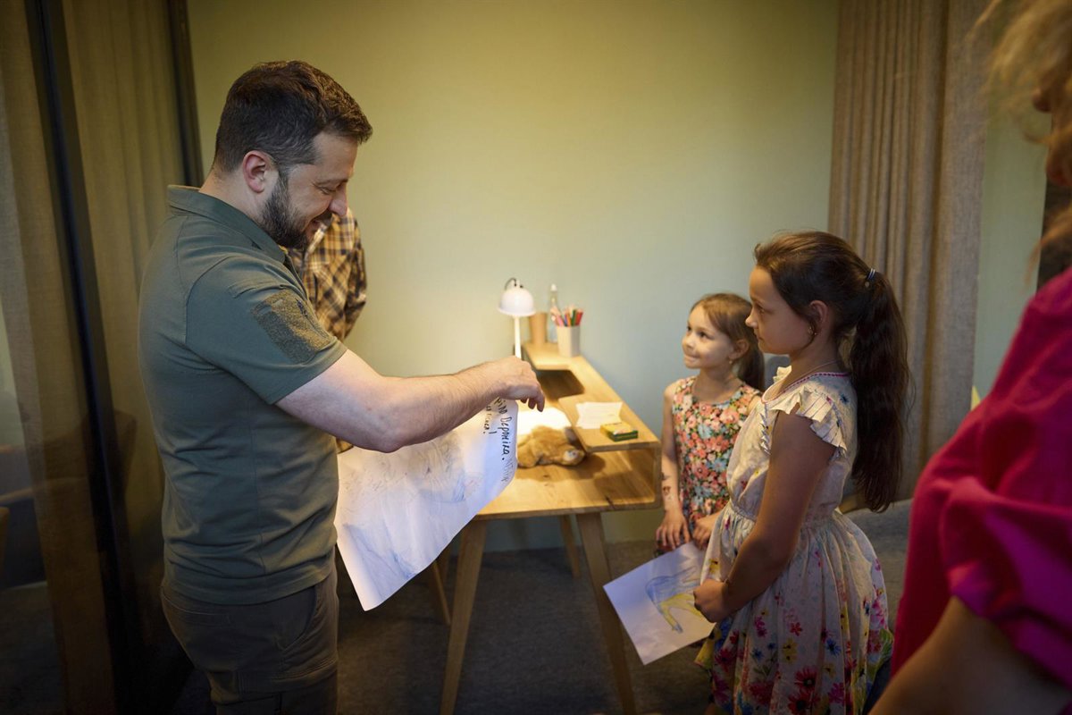 Archivo - El presidente ucraniano, Volodimir Zelenski, junto a unas niñas. - Europa Press/Contacto/Pool /Ukrainian Presidentia