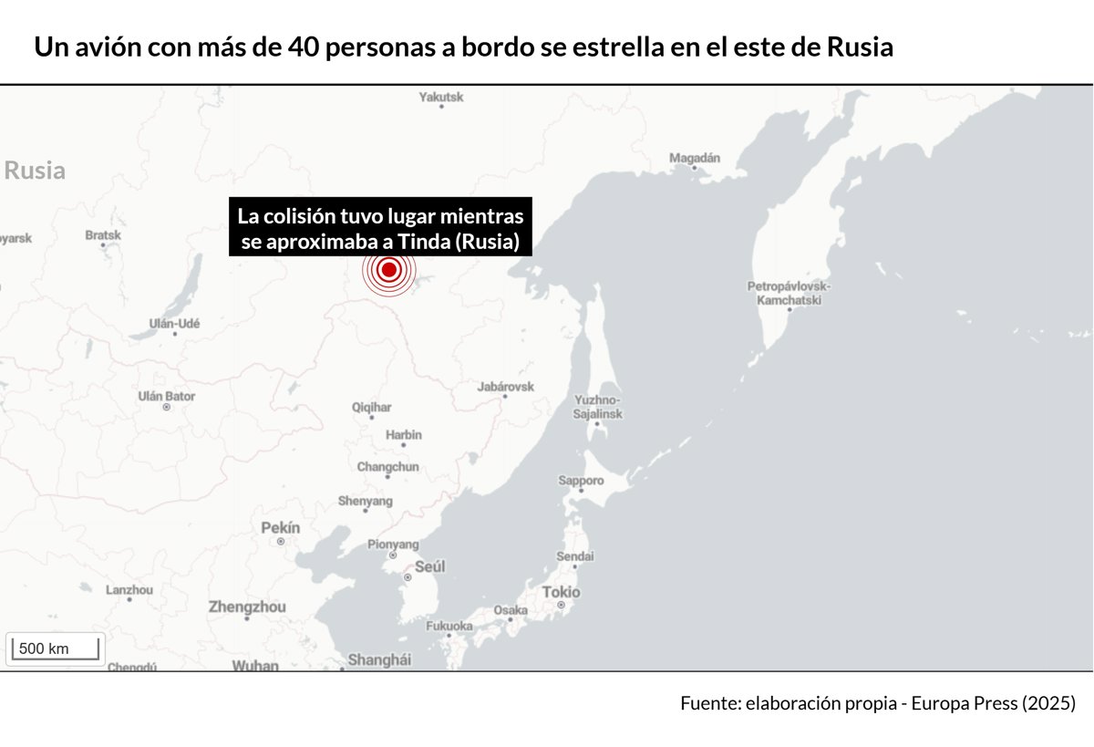 El fuselaje del aparato ha sido localizado a unos 15 kilómetros de Tinda, a donde se dirigía desde Jabárovsk. Los equipos de rescate están teniendo problemas para acceder por vía terrestre debido a la particularidades de la zona, en plena taiga rusa.