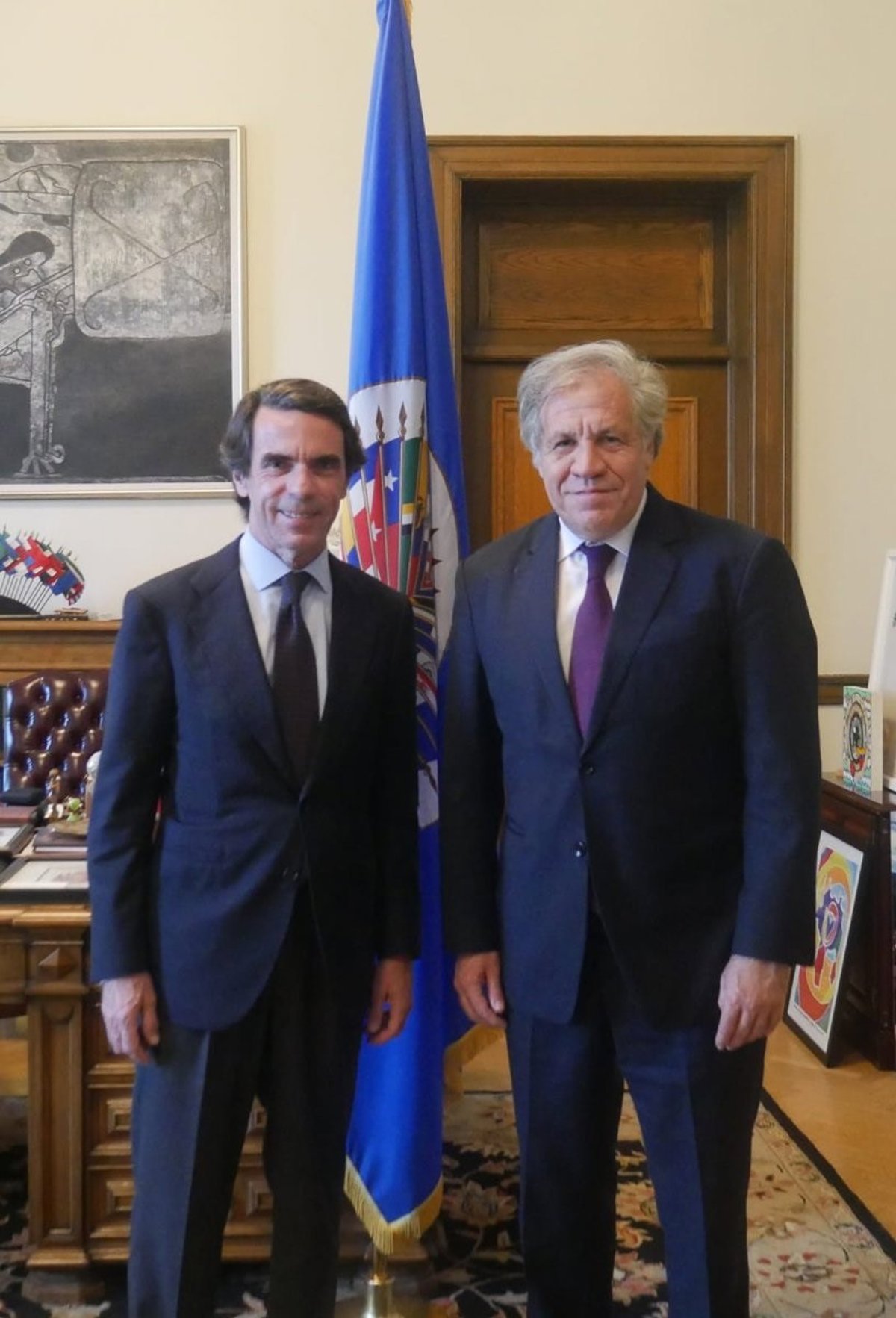El expresidente del Gobierno español José María Aznar se ha reunido este martes con el secretario general de la Organización de Estados Americanos (OEA), Luis Almagro, para hablar del "agravamiento" de la crisis en Venezuela y de la situación que atraviesa actualmente Latinoamérica.