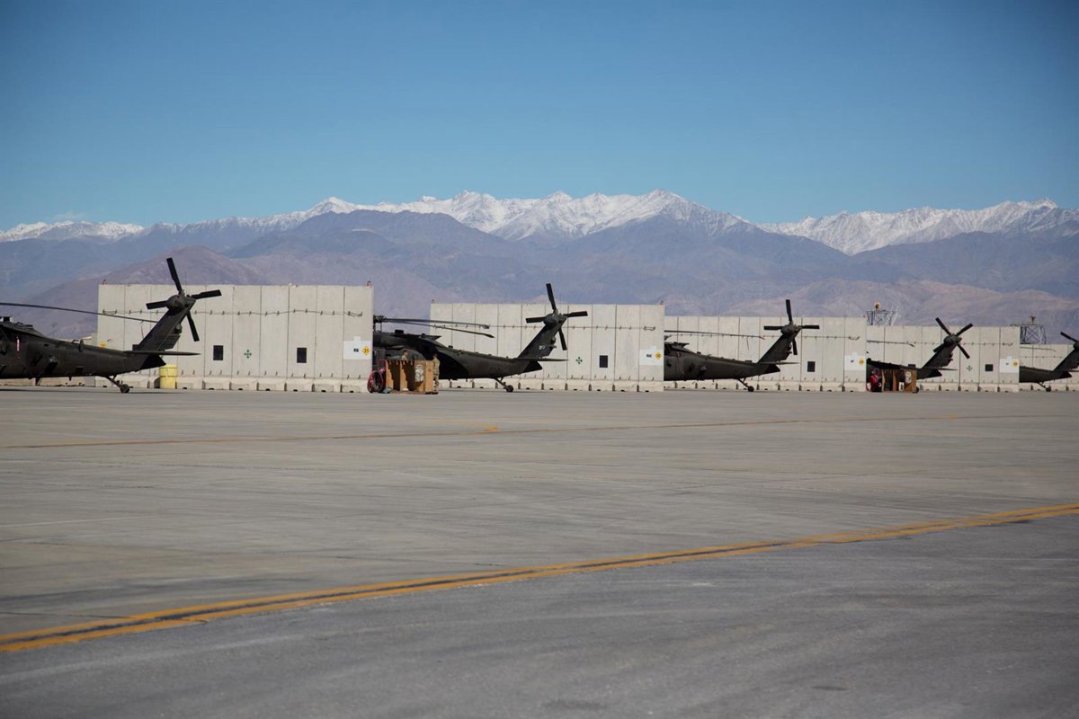 Archivo - Helicópteros del Ejército de Estados Unidos en la base aérea de Bagram, situada cerca de la capital de Afganistán, Kabul, en octubre de 2018 (archivo) - Europa Press/Contacto/Allison Dinner - Archivo
