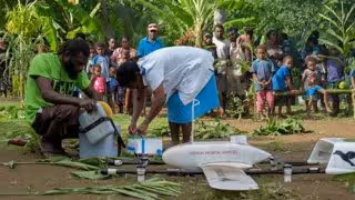 Uno de cada cinco niños de la remota isla del Pacífico no está inmunizado. Esta situación ha cambiado para Joy Nowai, ya oficialmente el primer bebé de la historia en recibir una vacuna entregada por dron, en el marco de una iniciativa en la que se ha inmunizado a trece niños y cinco mujeres embarazadas.