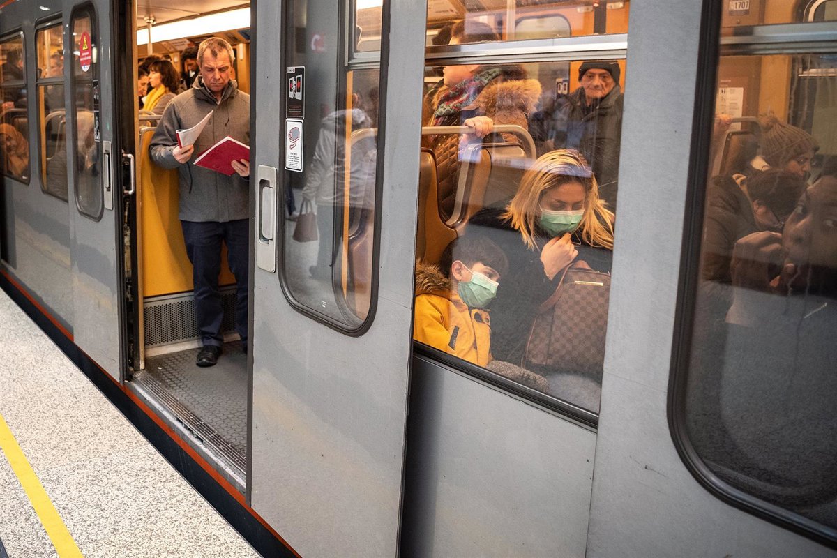 Personas con mascarilla en el transporte público de Bruselas - GETTY IMAGES / LEON NEAL - Archivo