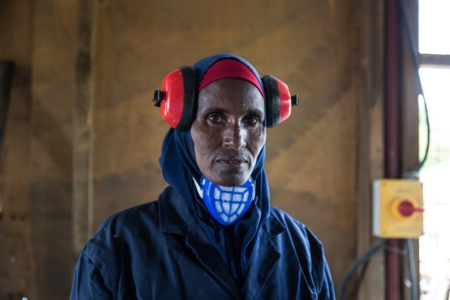Madina Abdi Assan es otra de las trabajadoras. Llegó a Dadaab en 2011 tras huir del conflicto y la sequía en Somalia junto a sus cinco hijos, a los que ha sacado adelante ella sola en el campo de refugiados, actualmente con lo que gana en la planta de reciclaje y lavando ropa para completar los ingresos.