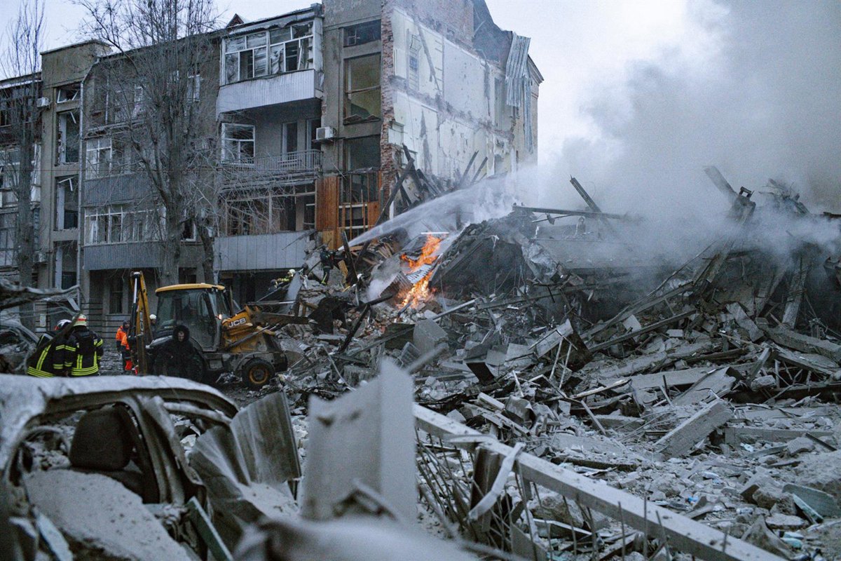 Archivos - Bomberos trabajan sobre los escombros dejados por el impacto de dos misiles balísticos rusos en Jarkov, Ucrania- Europa Press/Contacto/Nicolas Cleuet