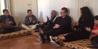 Bono ya visitó a finales del pasado mes Zaatari y compartió una instantánea con los pequeños en la página oficial de Facebook del grupo, con la frase "Hola, estoy aquí para ayudar". Nasser Touaibia es quien ha compartido este "emocionante momento" con el cantante a través de su cuenta de Twitter. "Me siento privilegiado de formar parte de esto", decía Touaibia.