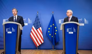 El secretario de Estado norteamericano, Antony Blinken, y el Alto Representante de Política Exterior de la UE, Josep Borrell - NIKLAS HALLE'N/EUC / ZUMA PRESS / CONTACTOPHOTO