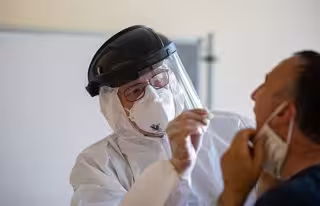 Un médico toma muestras para una prueba de coronavirus en Guetersloh - Guido Kirchner/dpa